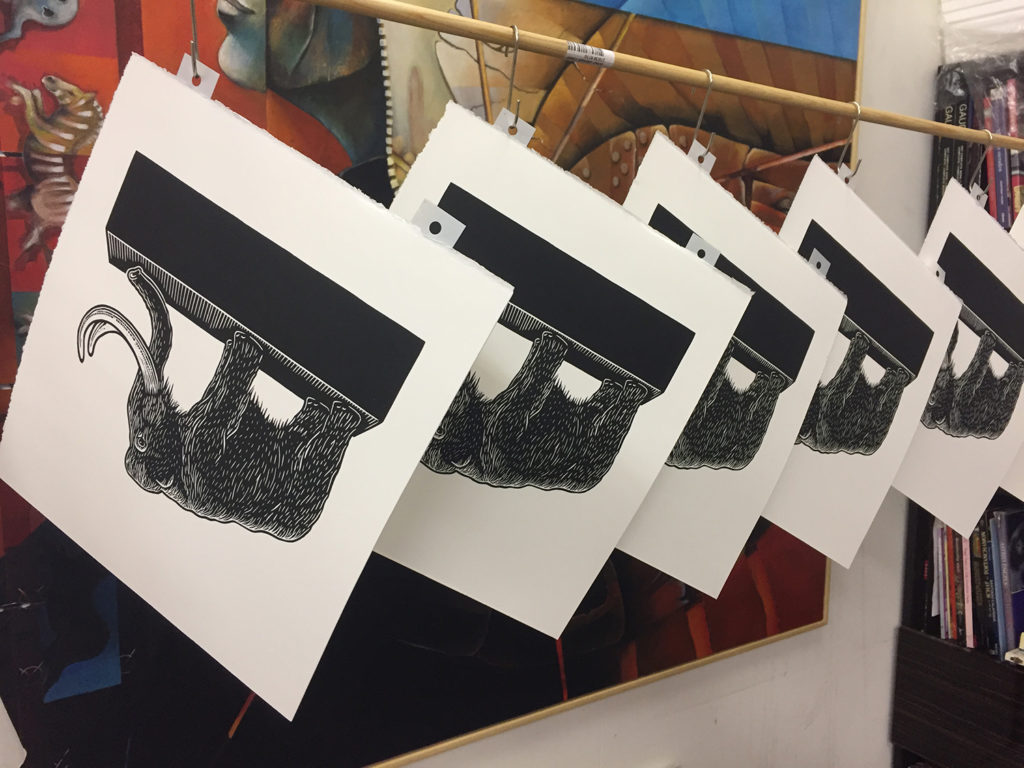 Na regen komt zonneschijn, en na katten komt… een wolharige mammoet! Logisch toch? Beide zijn aaibaar en toch ook afstandelijk, krachtig (of bij katten zeg je dan misschien pittig) en beide zijn ze in een linoprint te vatten. En zo zijn we weer terug bij de verbindende factor: mijn linoprints.