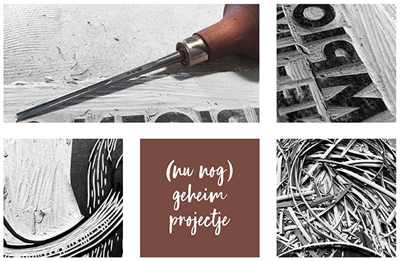 Na al dat kleurengeweld met die katten was ik even toe aan gewoon zwart-wit. En kreeg ik de opdracht om een lino voor een speciaal moment te maken. Nog even mag ik daar niets over zeggen, maar ik hoop in één van mijn volgende blogs uit de doeken te kunnen doen waar ik mee bezig ben geweest. Voor nu licht ik een heel klein tipje van de sluier op… Voor de rest moet je nog even geduld hebben 🙂